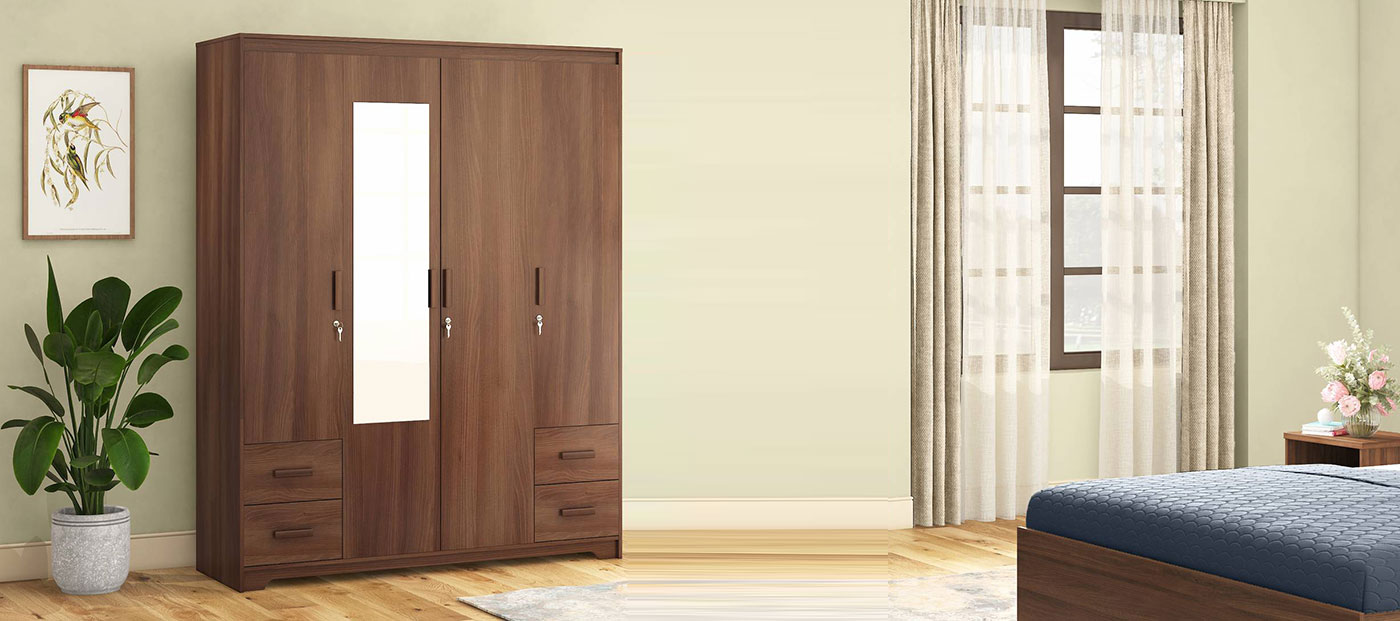 In this form of wardrobe, the shutter or door is connected to the closet with sturdy hinges, earning it the name hinged door wardrobe.